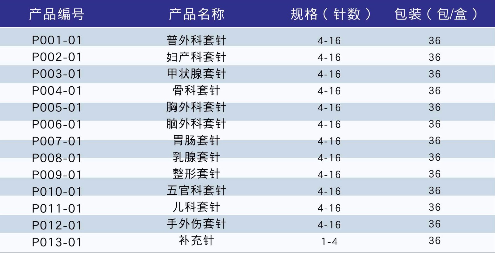 | 13 | 醫(yī)用縫合針(組合套針) | 13支裝 | 36 | ||